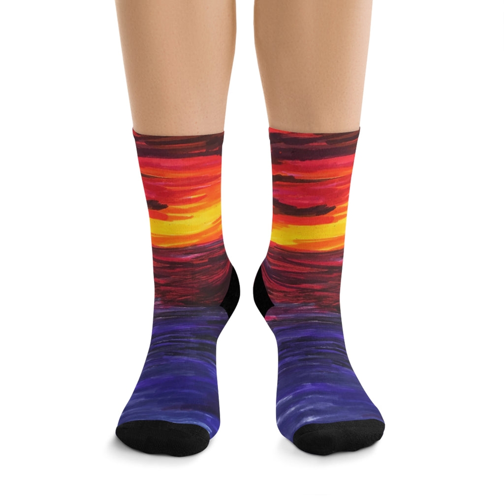 Tribe DTG socks are made using a proprietary blend of yarns specially sourced by Tribe Socks. They are 200 needle knit crew with half terry cushioned button for extra support and comfort. They are a true one size fits most, and are available up to size 12 male (U.S.). They have an unprecedented amount of stretch with durable print quality.