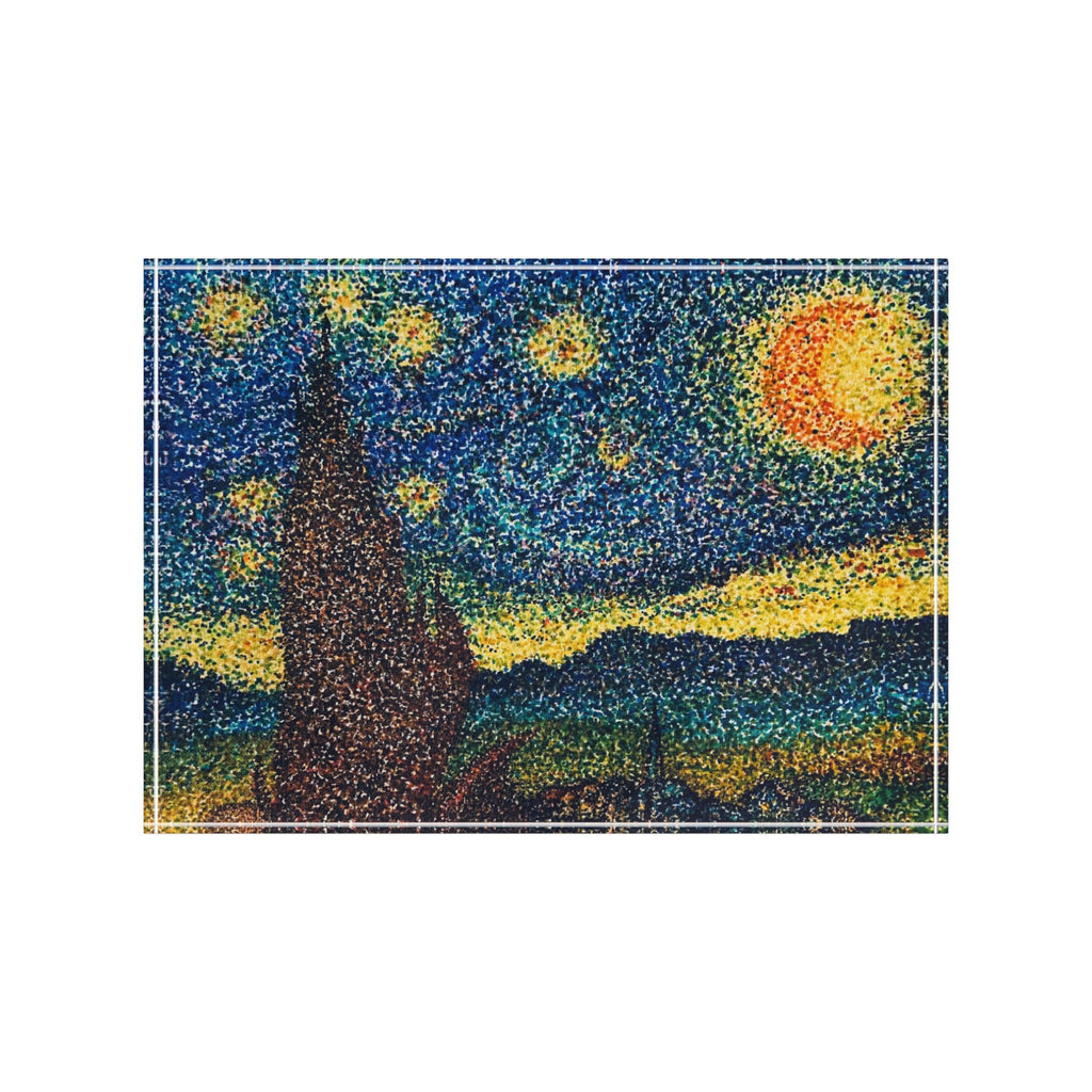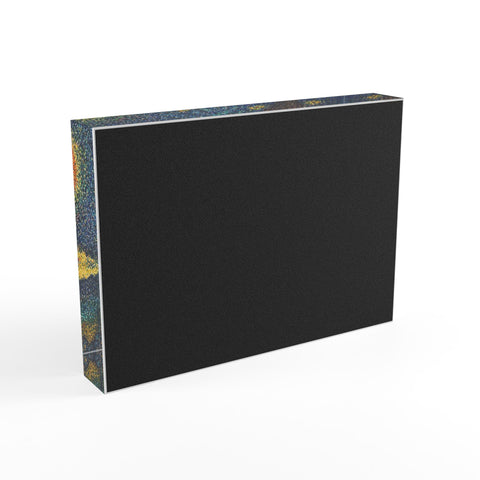 Van Gogh Inspired "A Starry Night in Dots" is now a really cool, glossy acrylic display. The clear block amplifies color and depth with AcryliPrint®HD, creating a vivid, glass-like finish that catches light from every angle. Place it on a mantel, shelf, or desk to bring warmth and texture to a room — the black vinyl backing adds contrast while keeping the overall look clean and modern. Lightweight and durable, it refreshes a space without fuss and wipes clean with a soft cloth for long-lasting clarity.