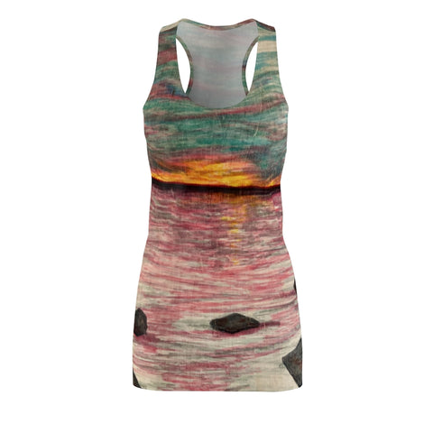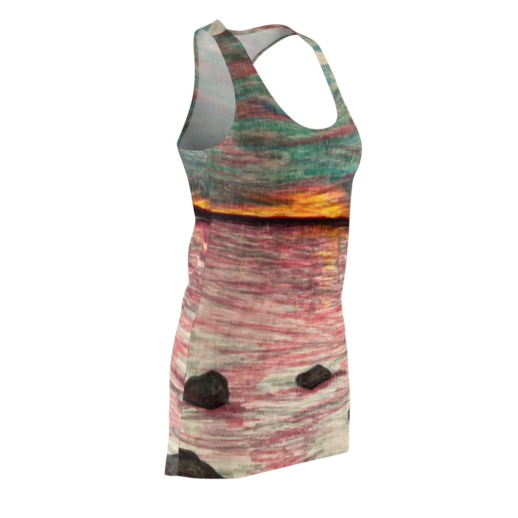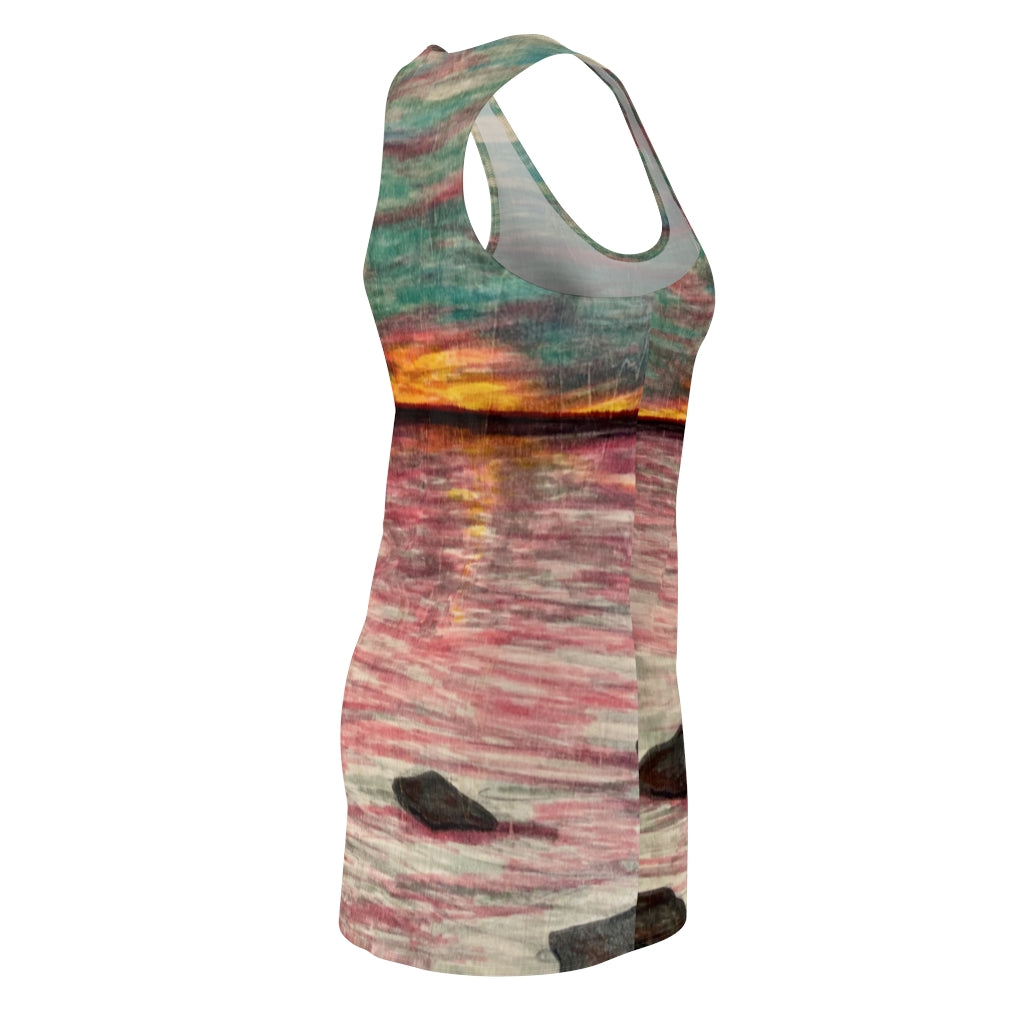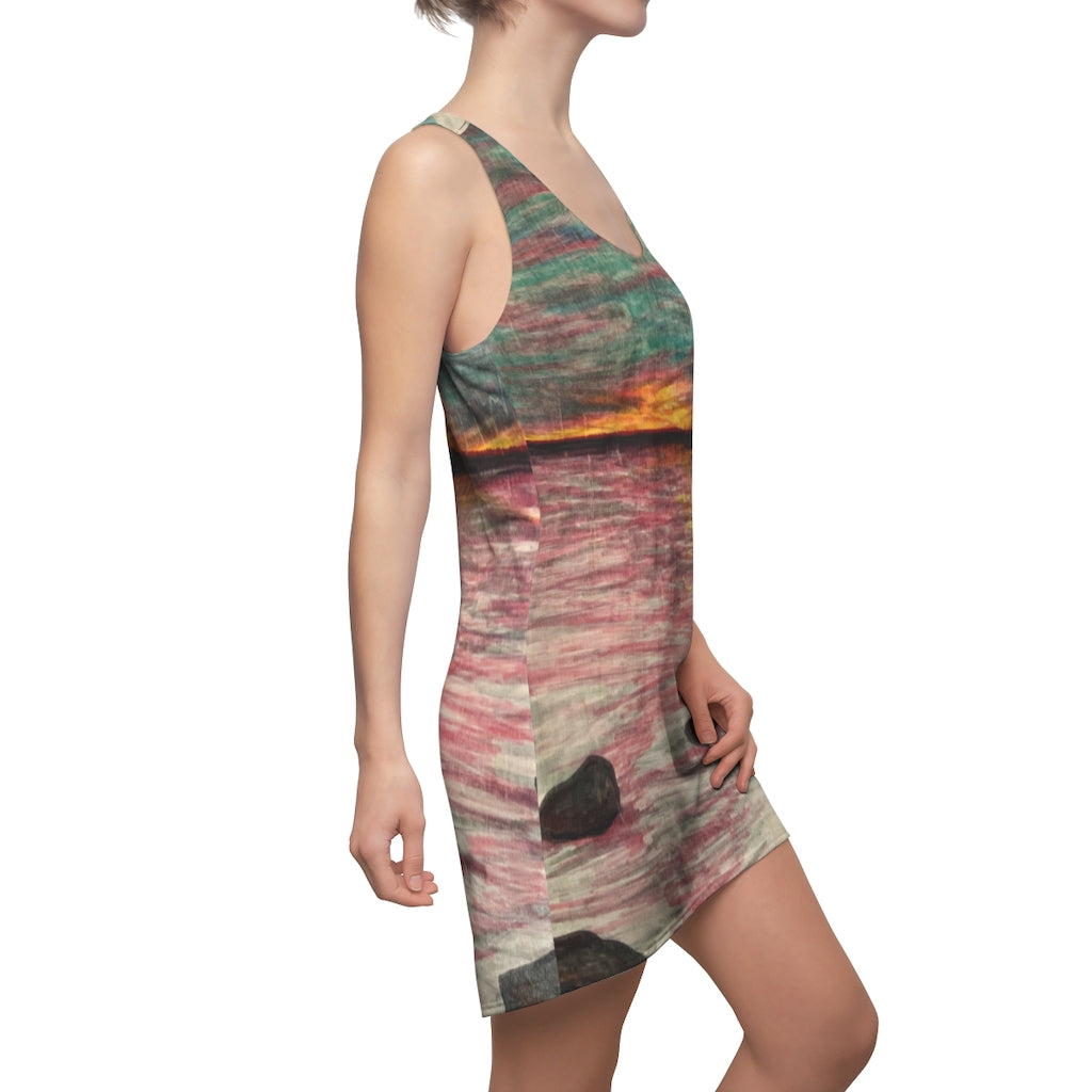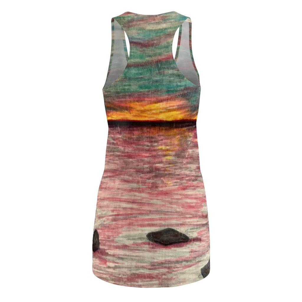 It is a premium racerback dress featuring "Dusk or Dawn" by R3 and it's appealing from every angle.