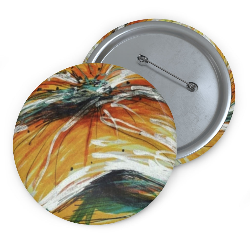 Orange Flower Pin Buttons