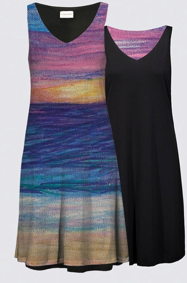 A classic shape, reversible dress for any occasion. Features "Onwards" by R3.