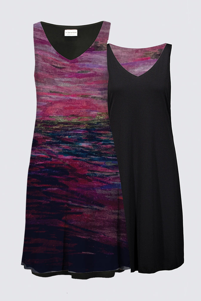 A classic shape, reversible dress for any occasion. Features "Deep. Night" by R3.