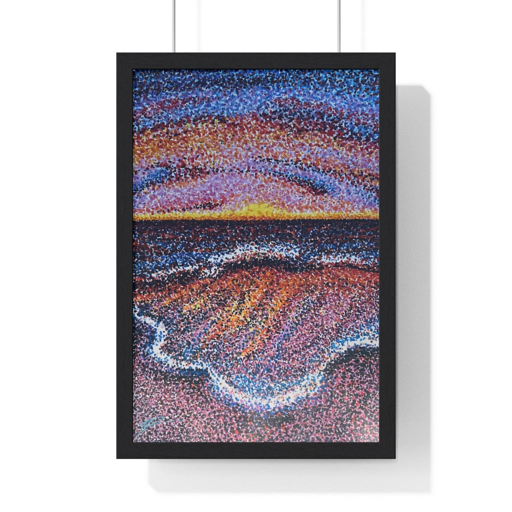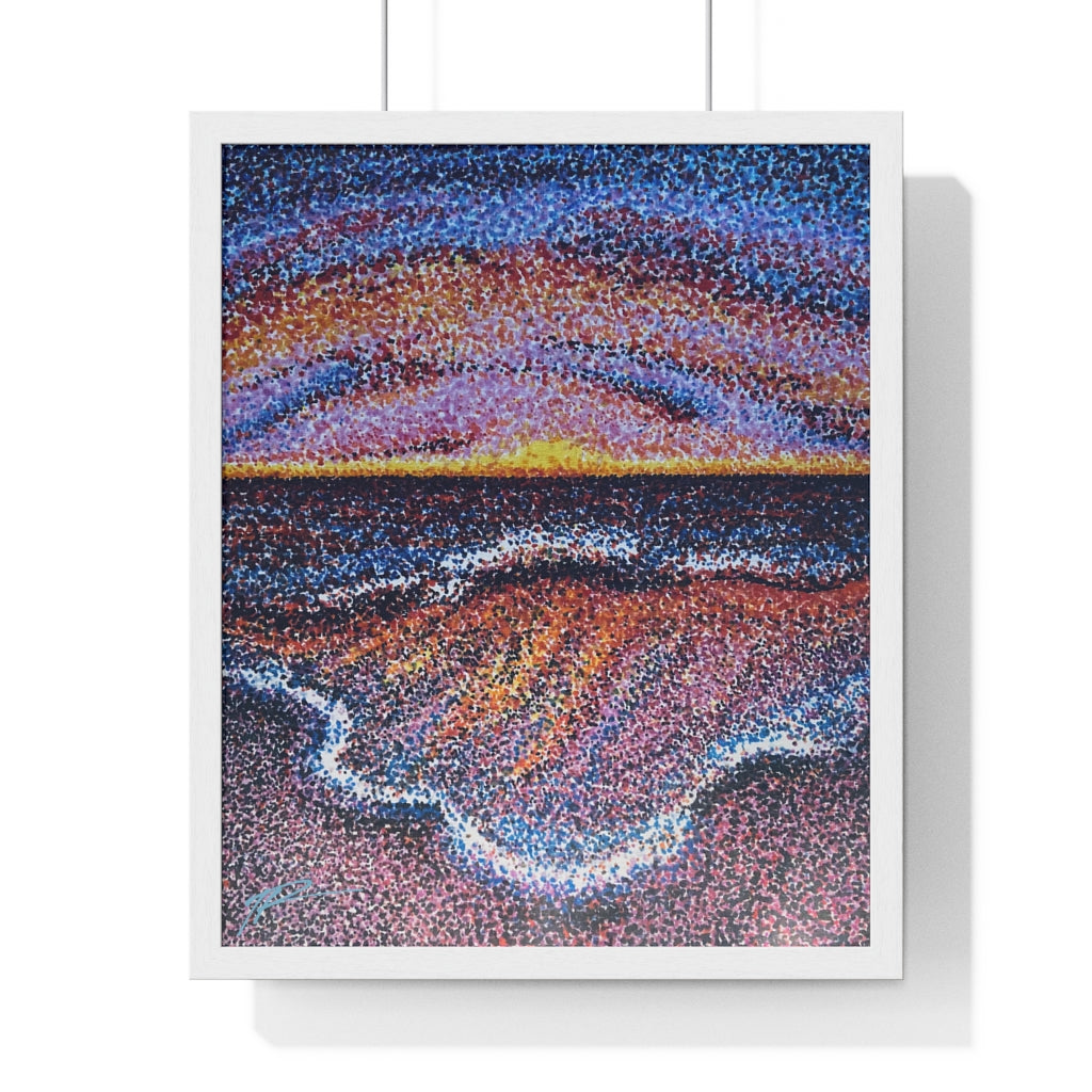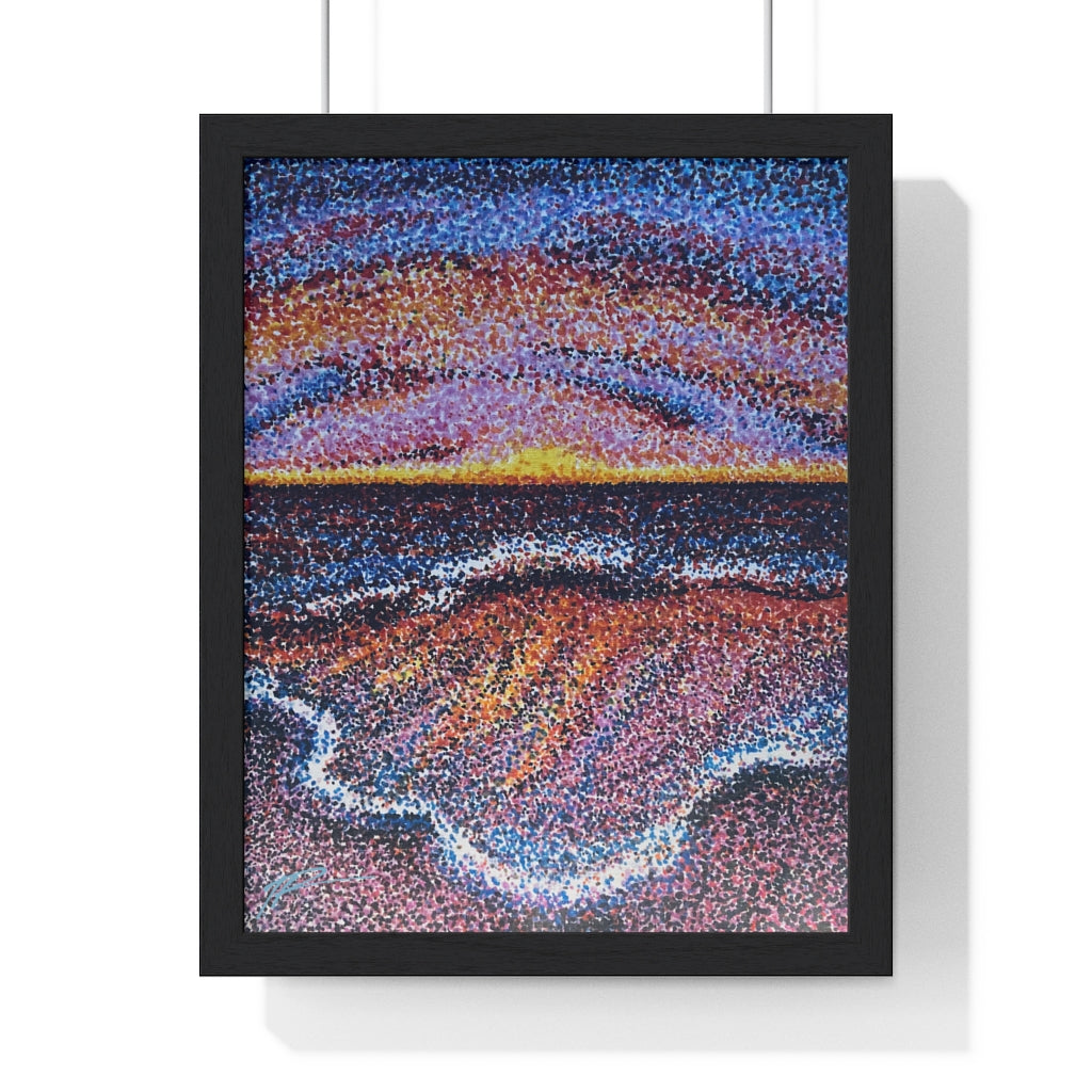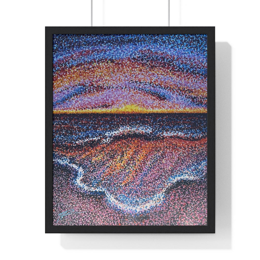 There are several sizes available of this framed premium print that will look great on your home or office wall. It is made with a durable wood-frame that comes in black or white.