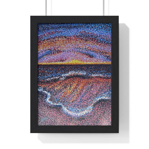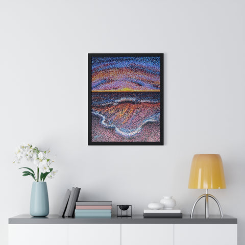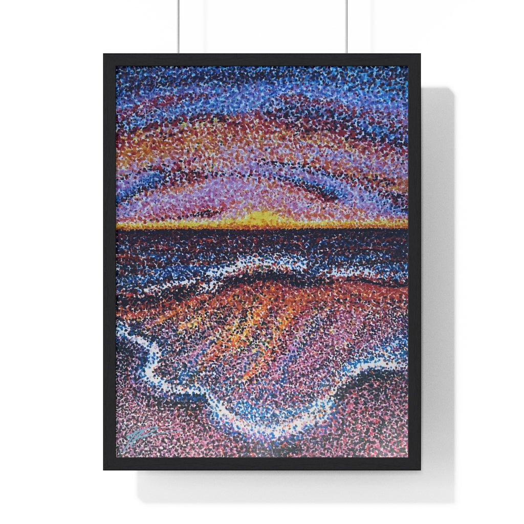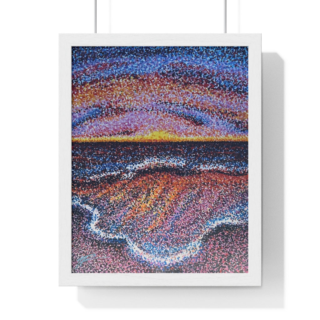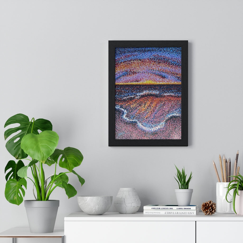 There are several sizes available of this framed premium print that will look great on your home or office wall. It is made with a durable wood-frame that comes in black or white.