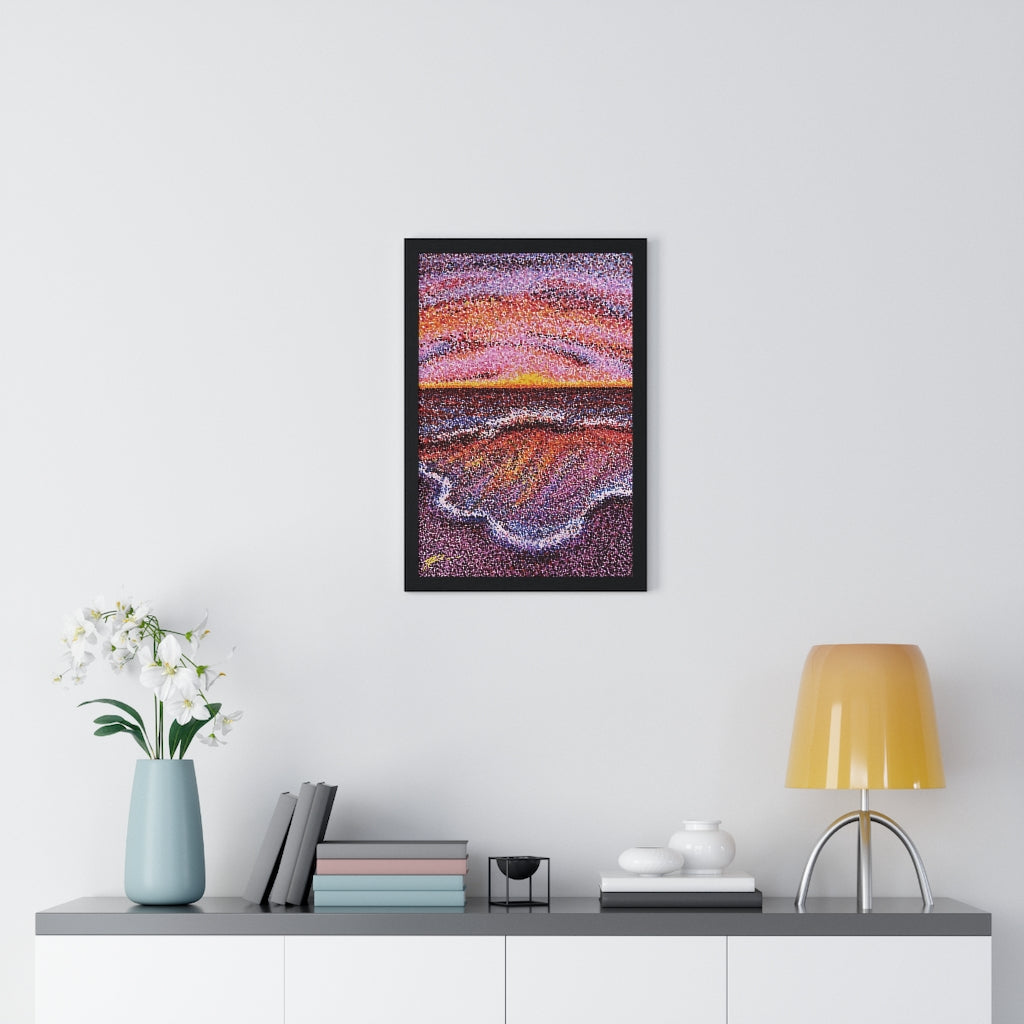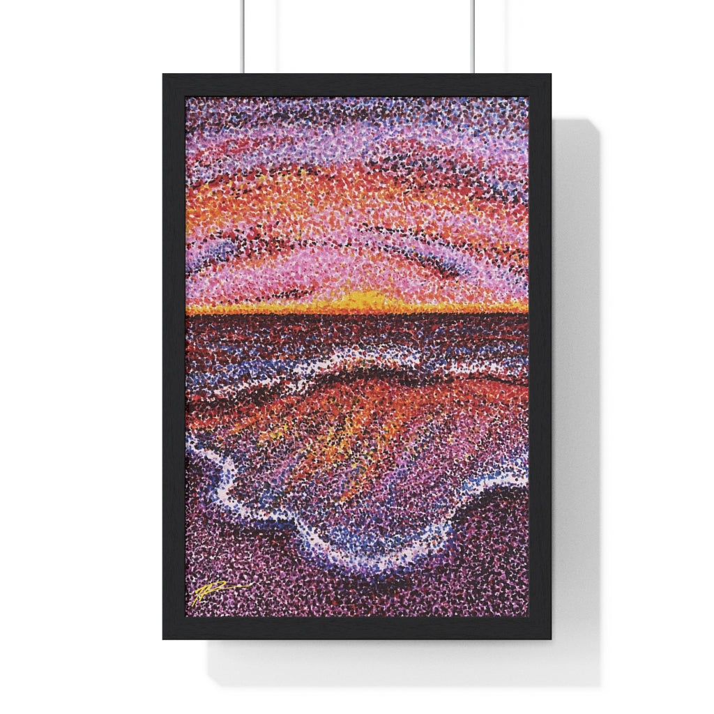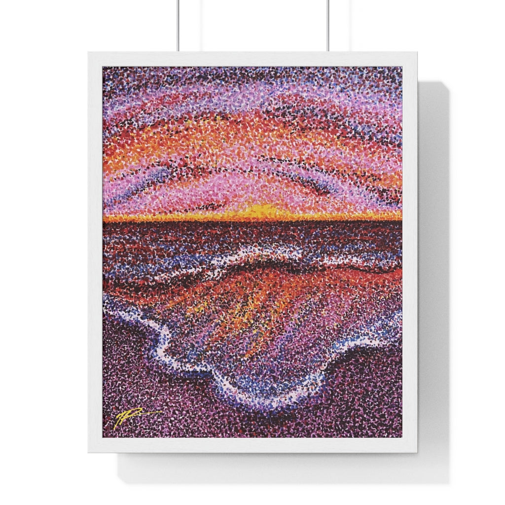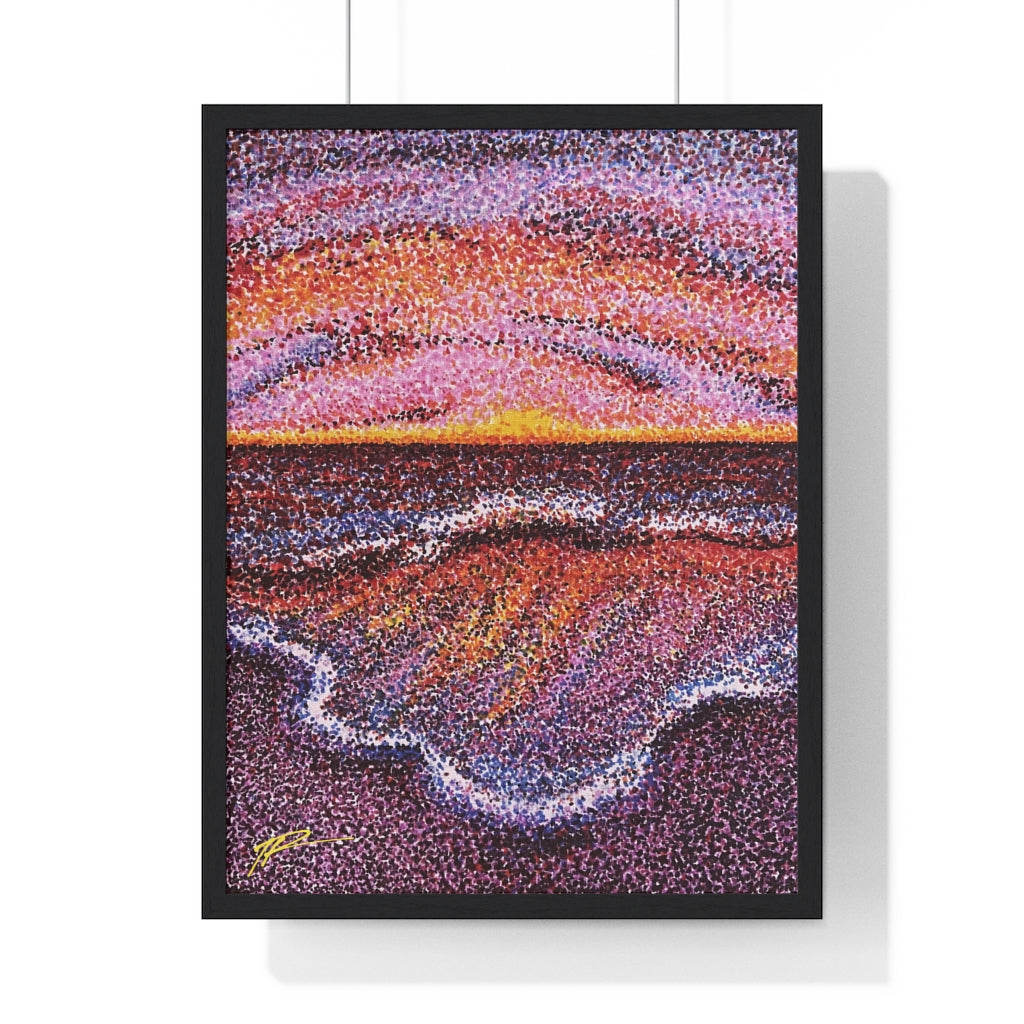 There are several sizes available of this framed premium print that will look great on your home or office wall. It is made with a durable wood-frame that comes in black or white.
