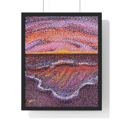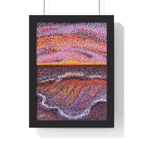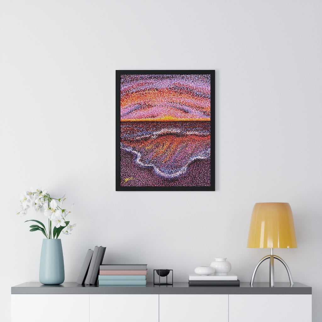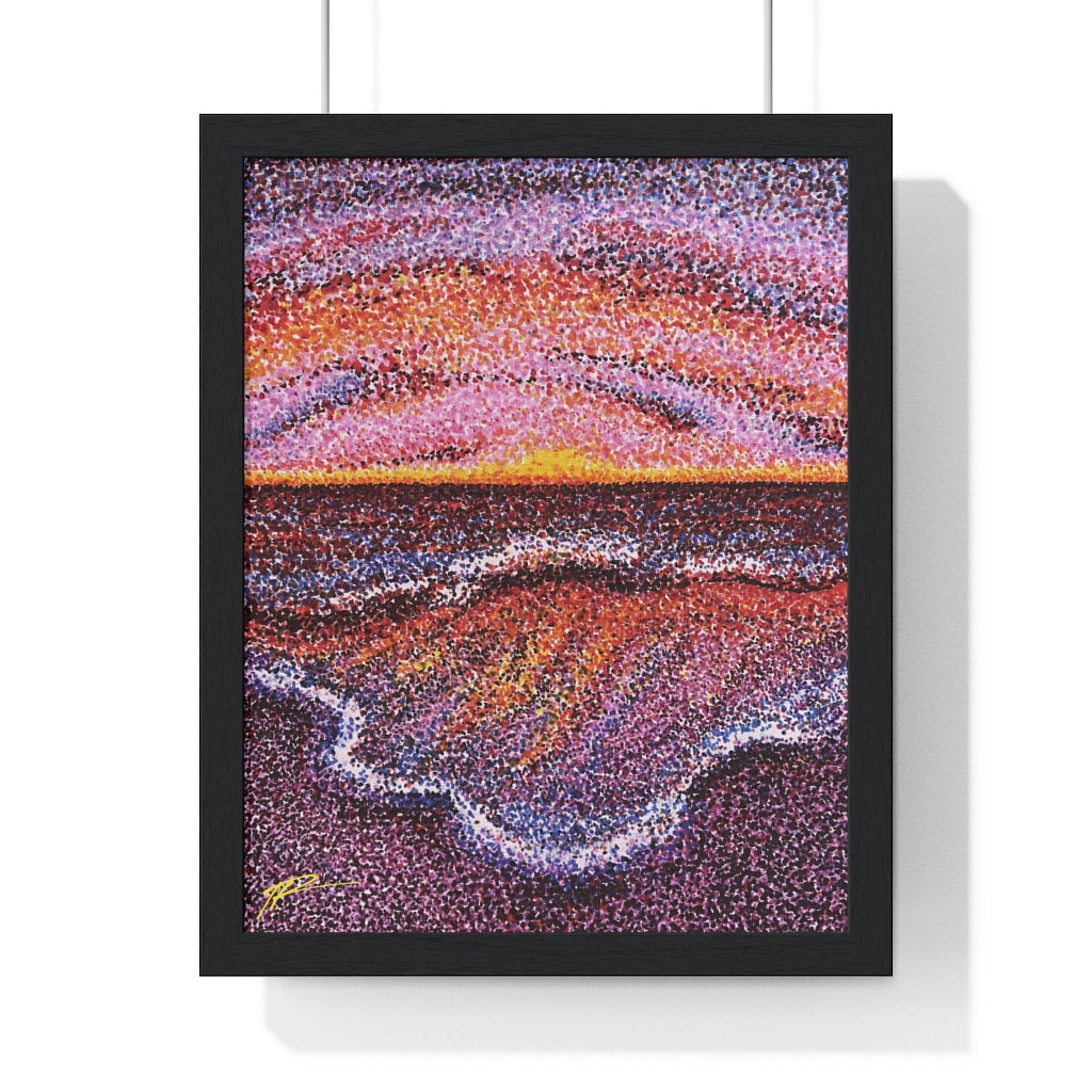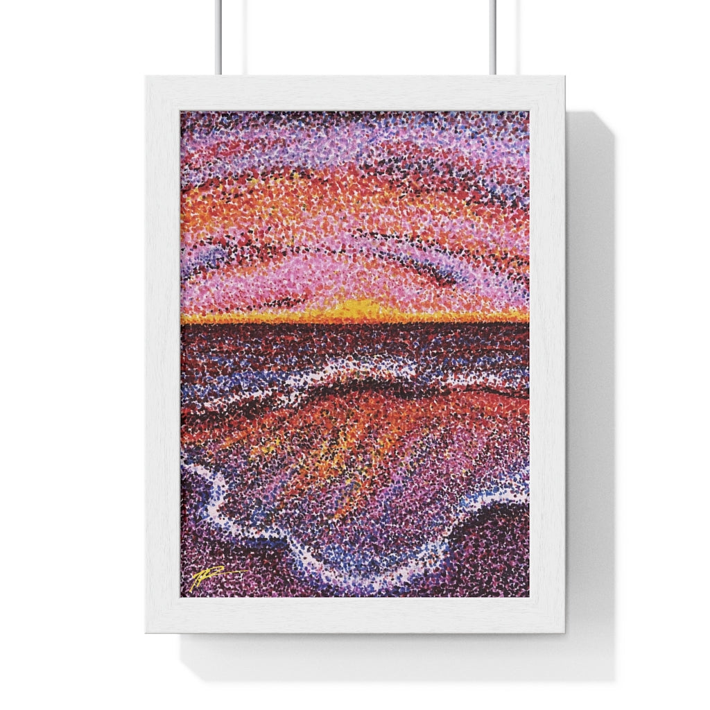 There are several sizes available of this framed premium print that will look great on your home or office wall. It is made with a durable wood-frame that comes in black or white.